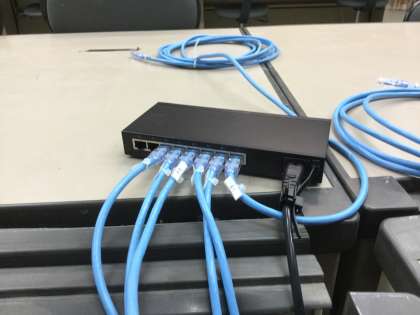 机の上でスイッチングハブに接続させて、6本ほどに分配されていました。