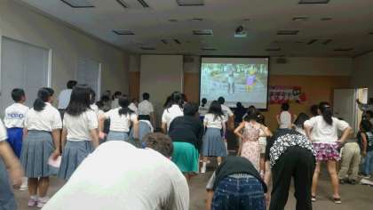 まずはじめに英語でラジオ体操です。