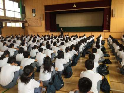 3年生では、服装点検、最高学年としての2学期の学年行事の取組方、夏休みの宿題について、進路関係等のお話でした。その後各教室で担任の先生よりお話がありました。
