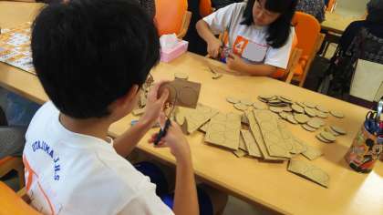 利用者さんがゲームで使う道具を作ります。 かたくて大変です?