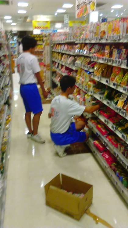 立ったり座ったりして、丁寧に並べています。