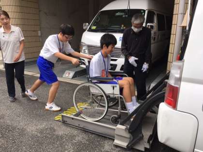 パワーリハビリの体験では、何キロまで上げれるか競い合っていました。身体を動かした後はほうじ茶ゼリーを頂き、栄養士さんからもお話を聞かせて頂きました。車椅子リフトの体験では、揺れが恐かったと言ってました。