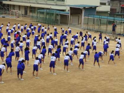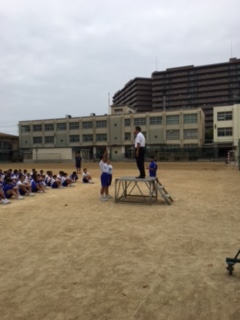 校長先生のお話、体育委員代表による選手宣誓と競技上の注意そして準備体操です。