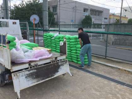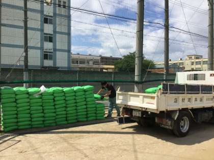体育大会に向けてのグラウンド整備用です。本日放課後に撒く予定に合わせて、天気等を見計らっての納入でした。