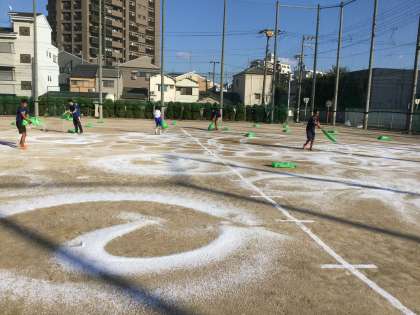 生徒達は袋を開けて、自分の周りに円形状に散布していきました。