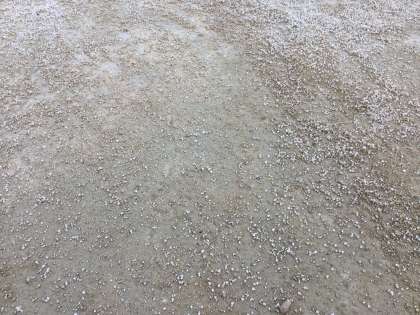 まかれたにがりの粒はは、素早く地面の水分を吸収して濃い色に変わっていきました。