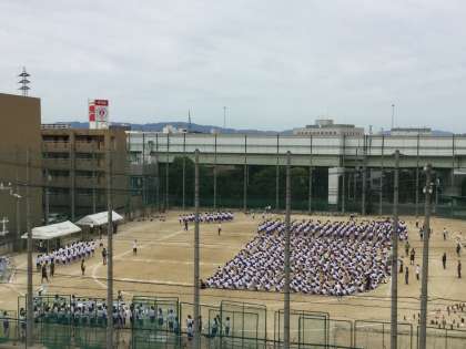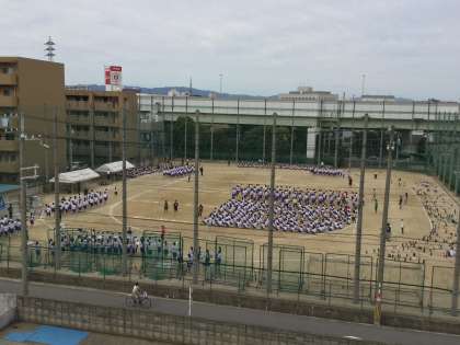 1号館4階から見た、900名弱の周回の行進は迫力がありました。