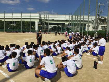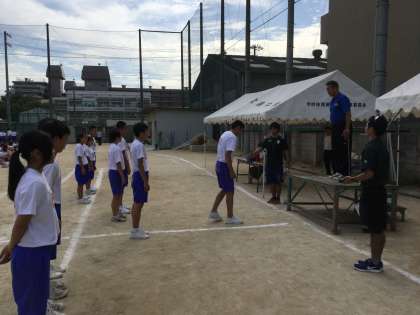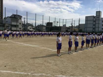 閉会式に向けての再入場の練習では、最初に体育委員が入場して一列に並んだあとに、かけ声をかけて全員が後ろに並んでの整列となりました。