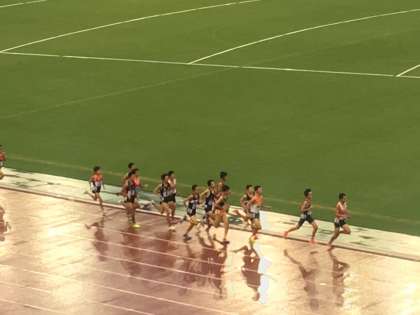 歌島中学校陸上部員の3年生が、男子3000mに出場しました。当日はあいにくの雨天で、学校のように土のトラックであれば中止となりますが、全天候型トラックにつき行うことができました。