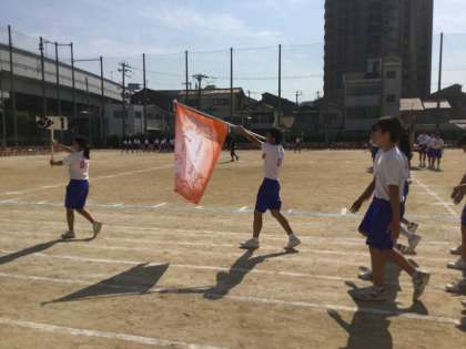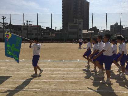 1年生の行進では、どのクラスも大きな声で、上級生に負けないくらい迫力がありました。