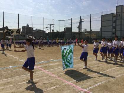 各クラスの学級旗もカラフルで、見ごたえがあります。