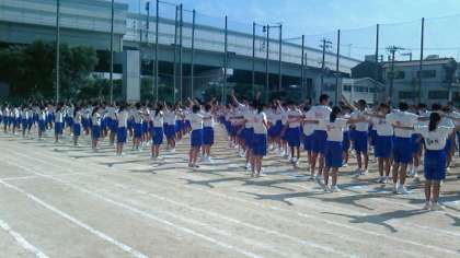 プログラムの最初は、ラジオ体操です。体育委員の号令で、きれいな体操を心がけました。