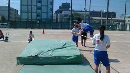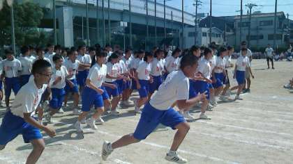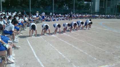 予行演習では全ての組がピストルでスタートするわけではなくて、1組目はピストルでスタートし、2組以降の組は一斉にスタートとなりました。真ん中の写真です。