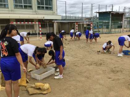 9月28日(木)午後、明日の体育大会に向けて当日の役割担当教師と係り生徒で、今日できる準備作業をしました。