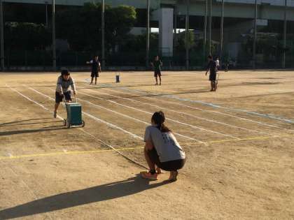 本部席前のスタート地点のライン・各種競技ラインもきれいに描かれました。