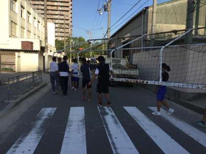 第2グラウンドにおいてあった、サッカーゴールも大勢の先生方により、道路を横切り第1グラウンドに運ばれていきました。