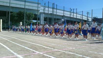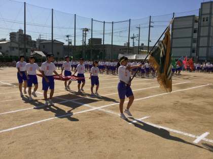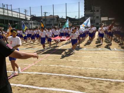 体育大会旗と前進しての23クラスが一列になっての見事な整列。