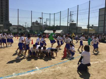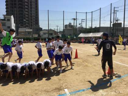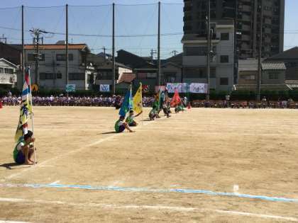 ゴールしたチームは、学級旗を立てています。