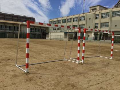 平成29年度校長経営戦略支援予算(区担当教育次長執行枠)における「課題解決に向けた学校取組支援事業」で購入していただいた、一対のハンドボールゴールの納入がありました。