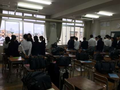 合唱コンクールに向けて、各クラスが早朝から登校しての練習です。玄関周りでは7時30分過ぎにはかなりの生徒が登校していました。