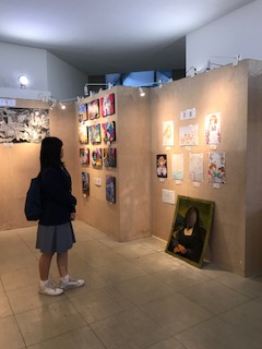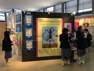 色々な学校の美術部の作品があり、歌島中学校美術部もおおいに刺激をうけたようです。同会場では、ほかに技術家庭科の作品展もやっています。