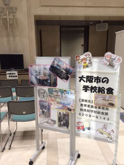食育についての市民の理解を深めるとともに関心を高めるために、大阪市の学校給食「学校における食育展」が、大阪市役所で催されています。