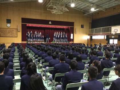 10月25日(水)の5・6時限目に、3年生は合唱コンクールのリハーサルを行い、各クラス自由曲を歌いました。