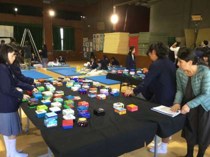 展示作品を生徒さんはじめ、保護者の方々に見ていただけるようにレイアウトに工夫の跡が見られます。