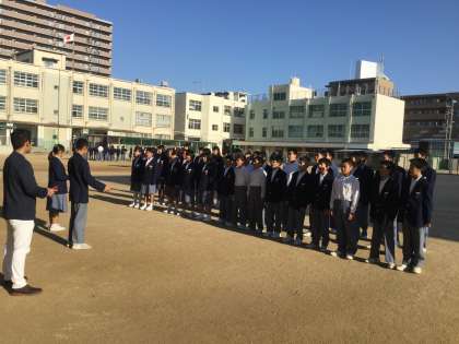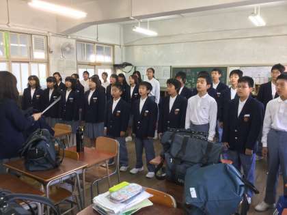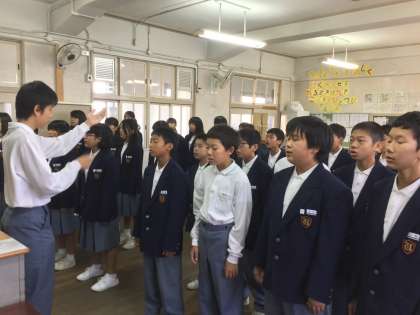 1年生が3・4時限目の合唱コンクールに向けて、運動場で・教室で頑張っています。