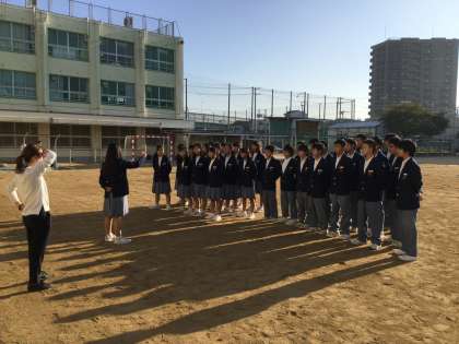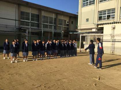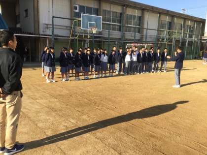 2年生の朝練を朝日を浴びて、グラウンドで校舎に向かっているクラスが多くありました。さすがに当日の朝の練習ということもあり、どのクラスもいつも以上の音量で美しいハーモニーでした。