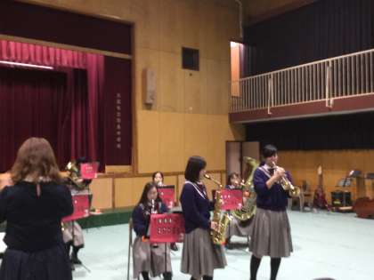 1年生8名、2年生3名、3年生4名の合計15名の吹奏楽です。吹奏楽のための民話、ディズニー映画「モアナと伝説の海」主題歌の演奏がありました。