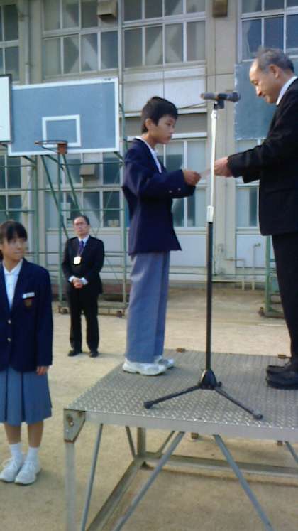 同じく後期学級役員認証式を行い、各学年の代表者に認証状が手渡されました。