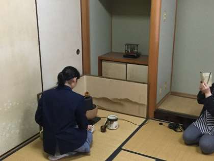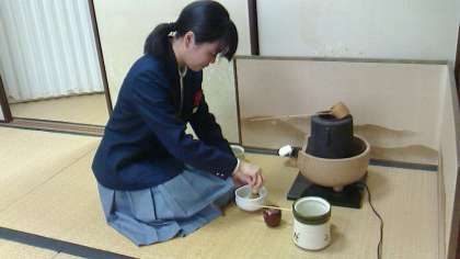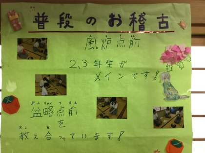 11月3日(金・祝)のお昼前に、歌島中学校の和室で、茶道部の「保護者茶会」を行いました。