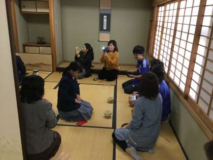 副校長先生はじめたくさんの先生方にお茶会に参加していただきました。顧問の指導のもとあざやかなお点前を見せていただきました。