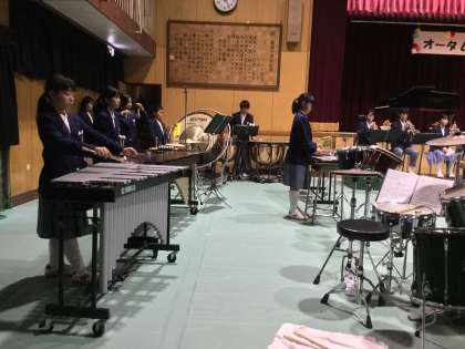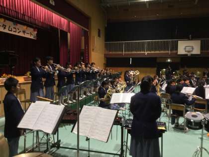 トランペットやトロンボーンの部員が、1列に並んで演奏する姿は壮観で美しいものがありました。打楽器の種類も多く、多彩な音が響き楽しむことができました。