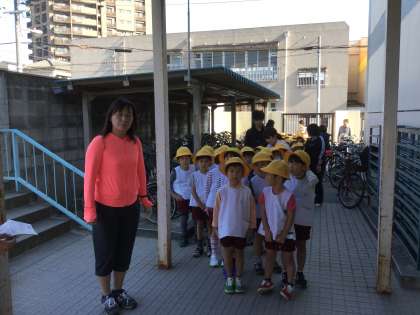 野里幼稚園からも園児が駆けつけました。(野里幼稚園の建物は2階建てのため、津波警報が発令され歌島中学校に避難に来ました。)