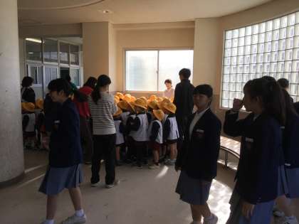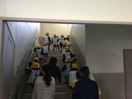 プールサイドの通用門から、入校し整列して階段を上り3階のピロティーで避難しました。