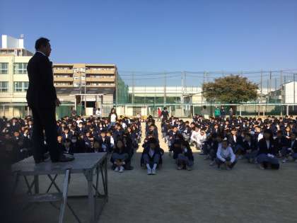校長先生より、釜石の奇跡「津波てんでんこ」の話がありました。自分の身に迫る危険から逃れること、自分は自分で守ることと話されました。