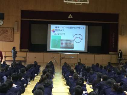 教室に帰ってからは「新大阪歯科衛生士専門学校」から歯ブラシのプレゼントがありました。歯科校医さん歯科衛生士さん、わかりやすく丁寧な指導ありがとうございました。