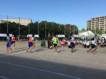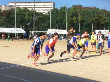 1人200メートルの6人でのリレーです。リレーゾーンでの2走・3走へのバトンのつなぎです。