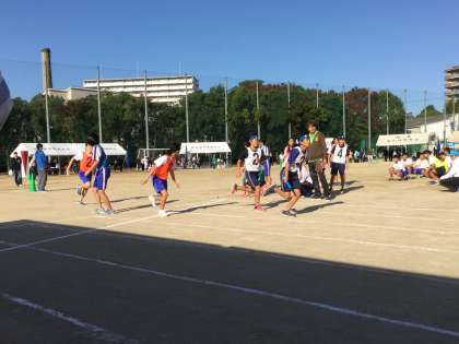女子対抗リレーには、陸上部員と女子テニス部員の混成チームで出場しました。