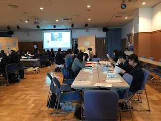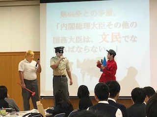 いろいろな学校による発表、毎日新聞社の新聞記者によるプロ解説、自由討論などで憲法改正について考えました。