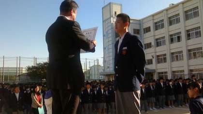 11月13日(月)の全校集会の前に、部活動表彰がありました。