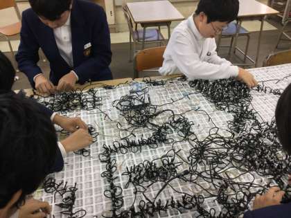 歌島中学校も参加しています。美術部員、パソコン部員、技術工作部員が共同で、区役所から作品制作用資材をお借りして作品を作っています。