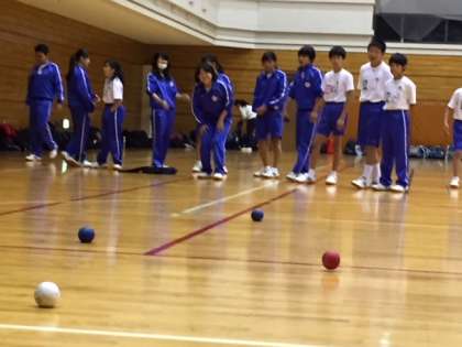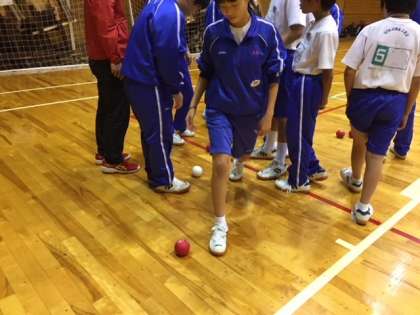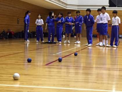 白い球を投げ。赤チーム青チームに分かれてどちらのチームの球が白い球に近く投げられるかを競います。