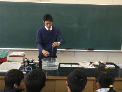 太さが違う2本の試験管を用意して、水中で細い試験管を太い試験管に差し込んで空気中に持ち上げると、少しづつ水が漏れるとともに細い試験管が上に上がっていく実験もありました。