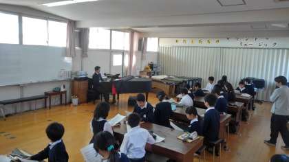 「歌島中学校の校歌」「ラバーズコンチェルト」「翼をください」「乾杯」という曲目を大きな声で歌いました。中学校からもたくさん先生方が参観に来られていました。