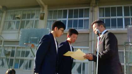 12月4日(月)の全校集会前に、部活動表彰がありました。