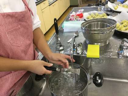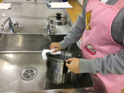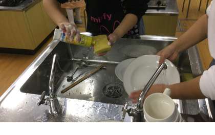 家庭科部調理実習 後片付け