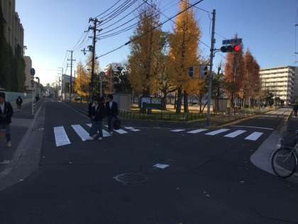 12月6日(水)の登校時の様子です。今朝も冷え込みがきつく、防寒具を身につけてきて信号待ちの間に取り外している生徒を多く見かけました。